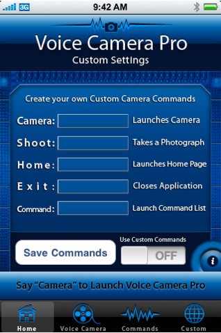 Ho provato Voice Camera su un iPhone 3G e non sono rimasto molto soddisfatto. I comandi vocali da me pronunciati non vengono eseguiti tranne “Shoot”, ma anche questo molto raramente. Da migliorare.
