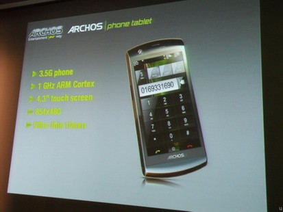 In arrivo anche Archos , un nuovo Tablet Phone. Composto da un hardware a dir poco ottimo ed è paragonato al Nexus One di Google. Presenta un display da 4,3 pollici (480×845 pixel) e processore ARM Cortex a 1 GHz.