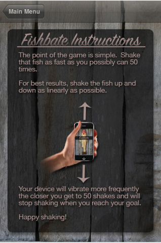 Lo scopo del gioco è quello di scuotere il più velocemente possibile l’iPhone, in alto ed in basso, per cercare di effettuare 50 movimenti nel minor tempo. I propri record verrano salvati nell’apposita classifica.
