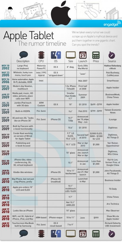 Engadget ha pubblicato un interessante articolo sulla storia del tablet Apple, i rumor, i brevetti e tanto altro (se capite l’inglese dateci un’occhiata) che negli anni hanno riguardato questo prodotto.
