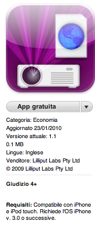 WebPresenter è un’applicazione davvero utile per gli addetti ai lavori, in quanto, utilizzando un protocollo VNC aperto, consente di collegare l’iPhone al computer e di visualizzare in streaming il sito ottimizzato, utlizzando il webKit browser.