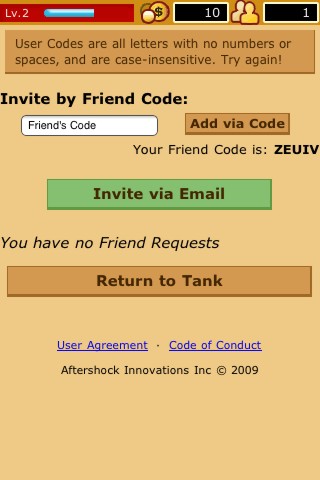 Inizialmente l’acquario sarà quasi vuoto e avrete il compito di abbellirlo a vostro piacimento acquistando, nell’apposito Store, altri pesci e decorazioni varie. Più alto è il livello e più oggetti potrete acquistare. Possibilità di invitare amici tramite “Friend Code” o tramite eMail.