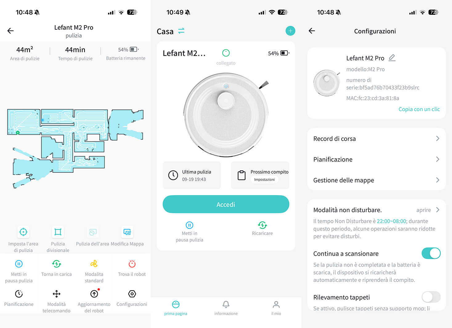 Non serve perdersi in mille impostazioni: in pochi tocchi il robot è pronto a partire. Inoltre, il supporto ad Alexa e Google Assistant aggiunge un ulteriore livello di comodità, anche se un’integrazione nativa con HomeKit sarebbe stata la ciliegina sulla torta per chi vive già immerso nell’ecosistema Apple.