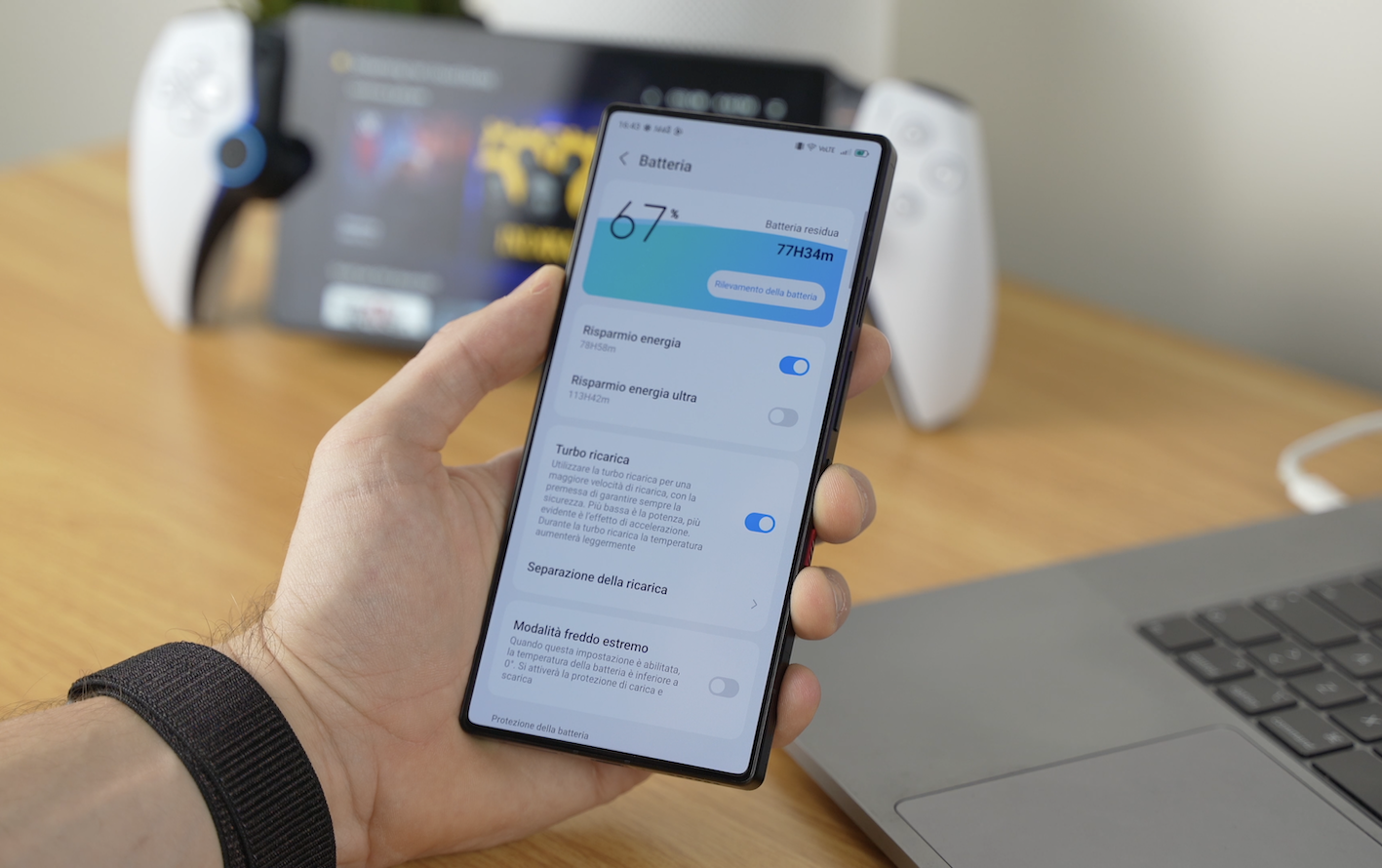 La batteria da 7.500 mAh è un altro punto di forza, eguagliata da pochi rivali. Supporta la ricarica rapida da 80 W (sia cablata che wireless) e anche la ricarica inversa wireless bidirezionale, per la prima volta su uno smartphone REDMAGIC.