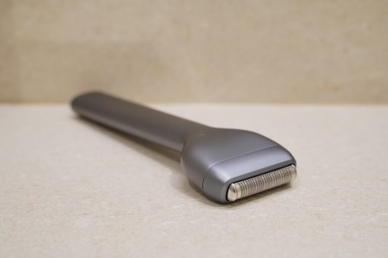 Uno dei primi elementi che colpiscono del T1 Pro è il design. Il rasoio è estremamente leggero (circa 93 g) e compatto, con un manico spesso soli 12 mm e una forma ergonomica che lo rende comodo da impugnare durante l’utilizzo. Il corpo monoblocco in metallo CNC non solo conferisce un aspetto premium, ma garantisce anche solidità e durabilità, caratteristiche raramente riscontrate in rasoi sotto questa fascia di prezzo.