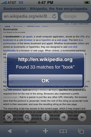 Dobbiamo dire da subito però, che Find In Page non è una vera e propria applicazione, non è l’ennesimo browser che vuole sostituirsi a quello di default, bensì un bookmarklet che si integra ad esso; citando Wikipedia: Un bookmarklet è un piccolo programma JavaScript che può essere memorizzato come un normale URL all’interno dei segnalibri (Bookmark in inglese) nei browser Web più popolari, o all’interno degli hyperlinks di una pagina Web.