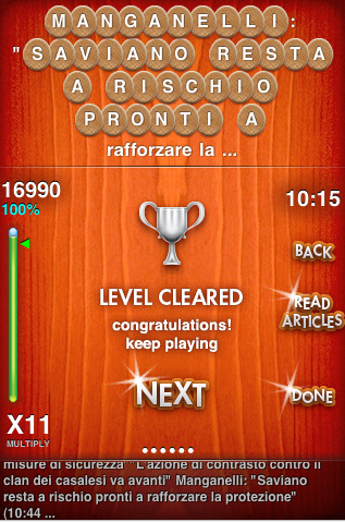 “Indovina la notizia” è un gioco per iPhone che consiste nel dover completare il titolo di news inserendo le lettere giuste al posto giusto. Trovate la recensione in questo nostro articolo.