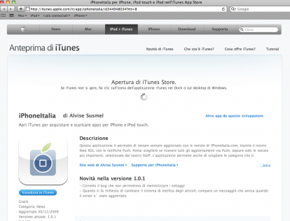 Questo consente di visualizzare la scheda di ogni applicazione senza la necessità di aprire iTunes e anche di consultare e magari copiare le informazioni contenute. Logicamente, per acquistare o scaricare l’applicazione è necessario utilizzare iTunes.