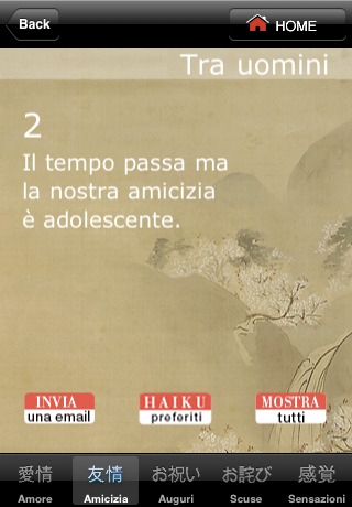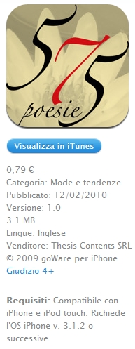 L’applicazione offre molte poesie originali composte dalla poetessa Flora Gelli, vincitrice di numerosi premi come il Merozzo e il premio di Vigonza, create appositamente per gli iPhonisti Italiani.