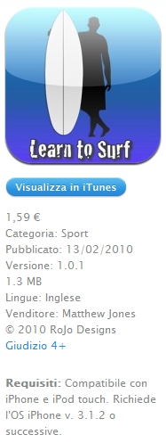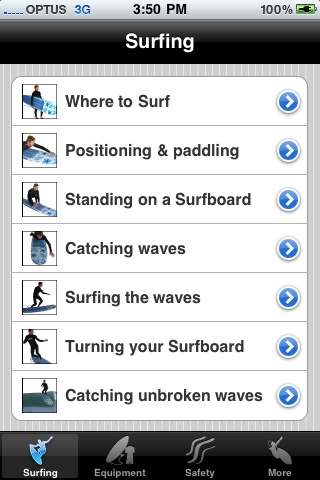 Tramite illustrazioni grafiche e utili suggerimenti, l’applicazione Learn to Surf, intende insegnare a tutti gli interessati, come imparare a fare surf. Ma non si limiti a questo, infatti spiega come vengono chiamate le parti della tavola da surf, l’equipaggiamento utile da avere e a cosa bisogna fare attenzione quando si va a cavalcare le onde. Unica pecca è che l’applicazione è in sola lingua inglese ma come già detto, le immagini aiutano molto durante l’apprendimento.
