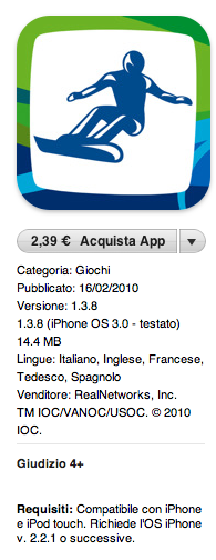 Real Arcade pubblica su AppStore il gioco ufficiale delle Olimpiade Invernali di Vancouver.