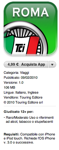 Ed anche il Touring Club arriva su iPhone con la prima applicazione dedicata alla città di Roma.