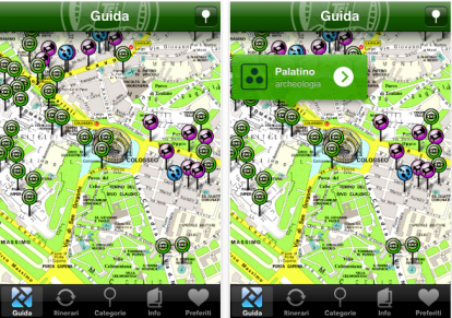 Questa applicazione porta su iPhone la mappa dettagliata della città di Roma, con i disegni dei monumenti più famosi, oltre 800 punti di interesse (ristoranti, musei, alberghi…), 14 itinerari di visita storici e culturali per scoprire l’Urbe e numerosi approfondimenti storici ed enogastronomici.