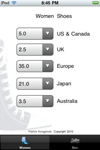 Converte le misure delle scarpe in base ai vari tipi di unità utilizzate