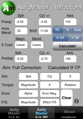 Applicazione medica per calcolare determinate informazioni relative all’astigmatismo