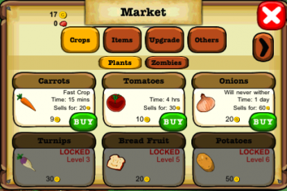 Con il termine Farmville molti di voi avranno intuito di cosa si parla: un gioco online che ha spopolato sul social network Facebook. Zombie Farm prende a modello tale gioco nel quale, l’obiettivo è quello di guidare il nostro contadino al fine di ottenere un guadagno sempre maggiore ampliando e accessoriando il più possibile i nostri campi.