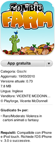 Di giochi per iPhone in stile Farmville, un gioco gratuito che ha spopolato su Facebook negli ultimi tempi, ne esistono diversi. Quello che vi presentiamo oggi ha però un fattore originale: la presenza di simpatici quanto crudeli zombie, che vi accompagneranno nel vostro lavoro di contadino.